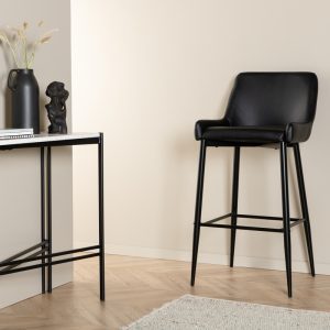 - Zwart is zwart. Maar een barkruk met zwart leer zorgt voor een totaal andere uitstraling dan zwart kunststof. Kijk dus goed welke stijl het beste bij jouw wensen past. Denk hierbij ook aan comfort, beschikbare ruimte, afwerking en prijs.