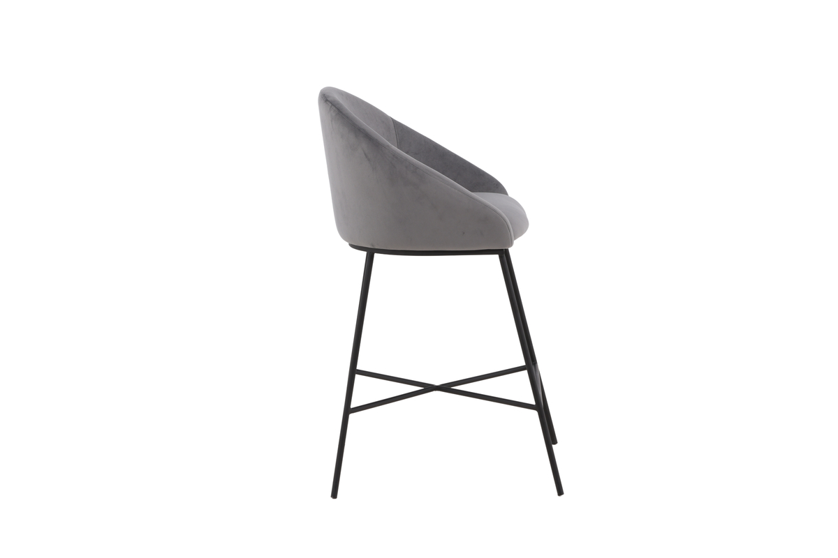 Deze barkruk behoort tot de Barkrukoutlet collectie en heeft een volledig gestoffeerd ontwerp met een licht afgeronde rugleuning en zitting in zachte fluwelen stof, gecombineerd met minimalistische poten in zwart gepoedercoat metaal gegarandeerd net zo comfortabel als opvallend.