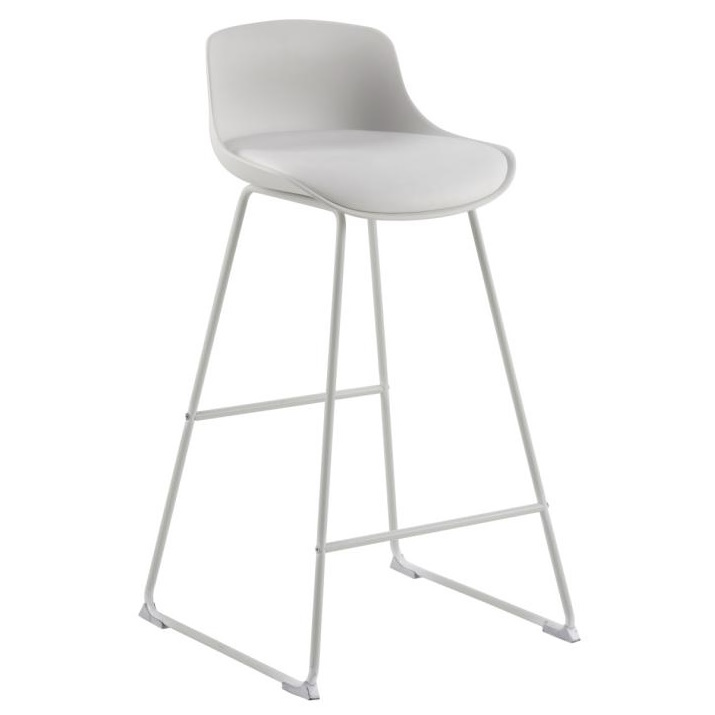 De barkruk Teun heeft een slede voet van wit metaal en een eigenzinnige kunststof kuip met kunstlederen zitting. Een mooie barkruk voor je feest of aan je bartafel. Geschikt voor een barblad van maximaal 95cm bovenkant blad.