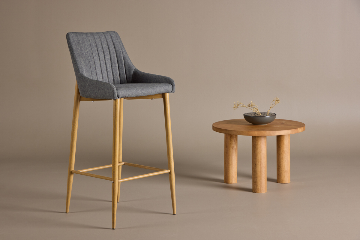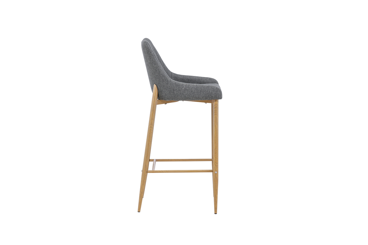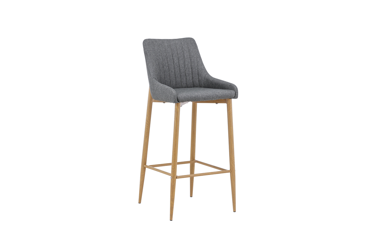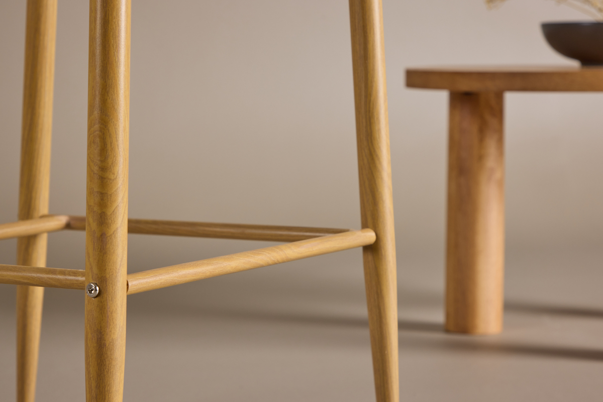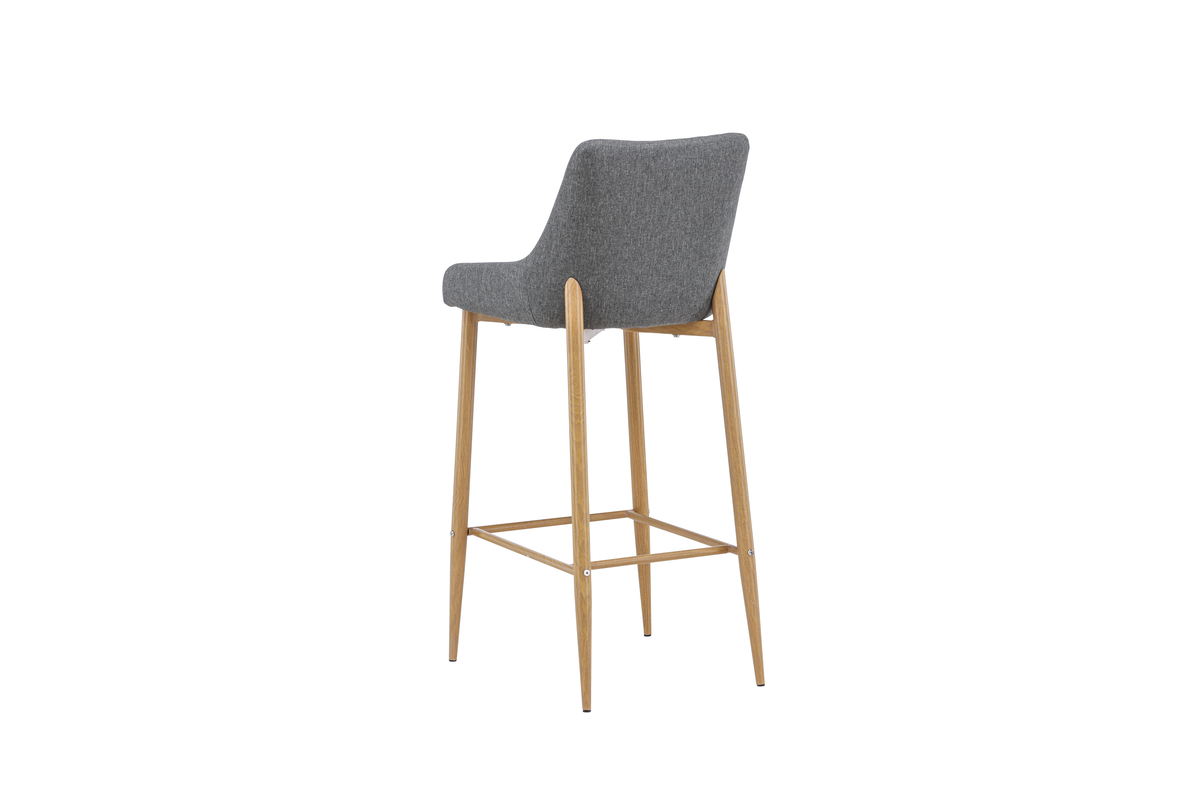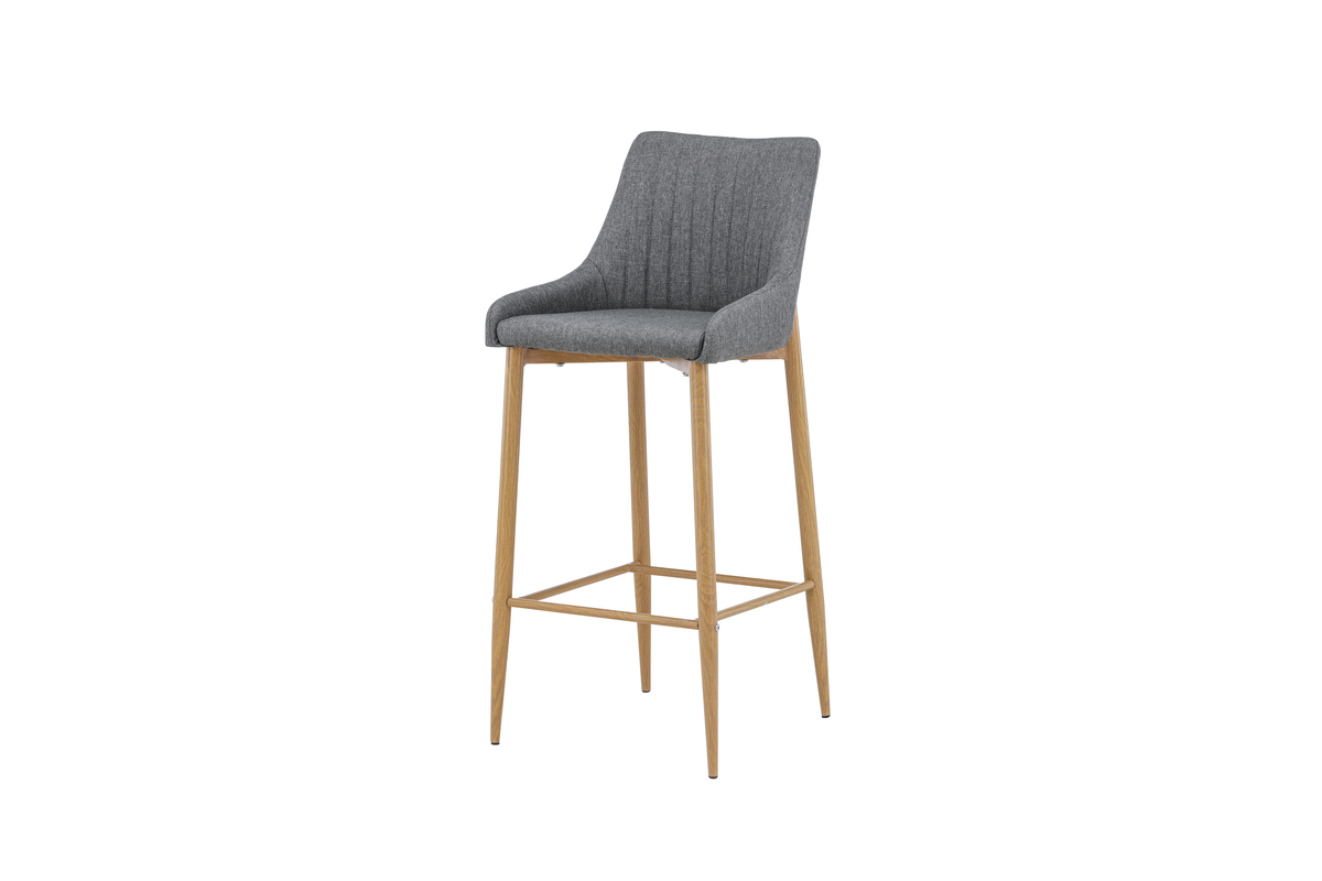 De Jukka barkruk heeft een comfortabel design met metalen poten in eiken look en een geïntegreerde voetsteun voor extra comfort.